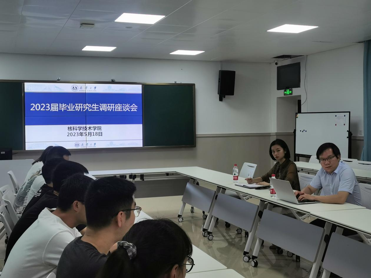 5月18日下午,我院在核学楼119教室召开2023届毕业研究生调研座谈会。副院长赵鹏程,学工室辅导员曾永艳老师,2023届毕业研究生代表参加会议,会议由赵鹏程主持。