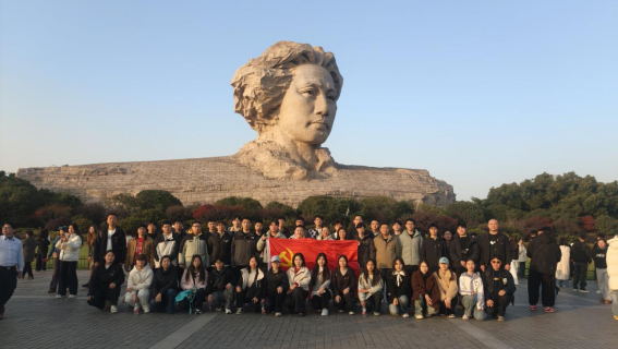 在新民学会旧址,师生们通过珍贵的历史文物与文献资料,重温了毛泽东、蔡和森等革命先驱“改造中国与世界”的初心萌发与早期实践。全体党员面对党旗庄严宣誓,铿锵誓言在革命故地久久回荡。在长沙党史馆,大家系统学习了党领导长沙人民开展革命、建设与改革的奋斗历程。随后,师生们来到橘子洲头,在青年毛泽东艺术雕塑前驻足瞻仰,深切感受革命先辈在青年时期的远大理想与时代使命。