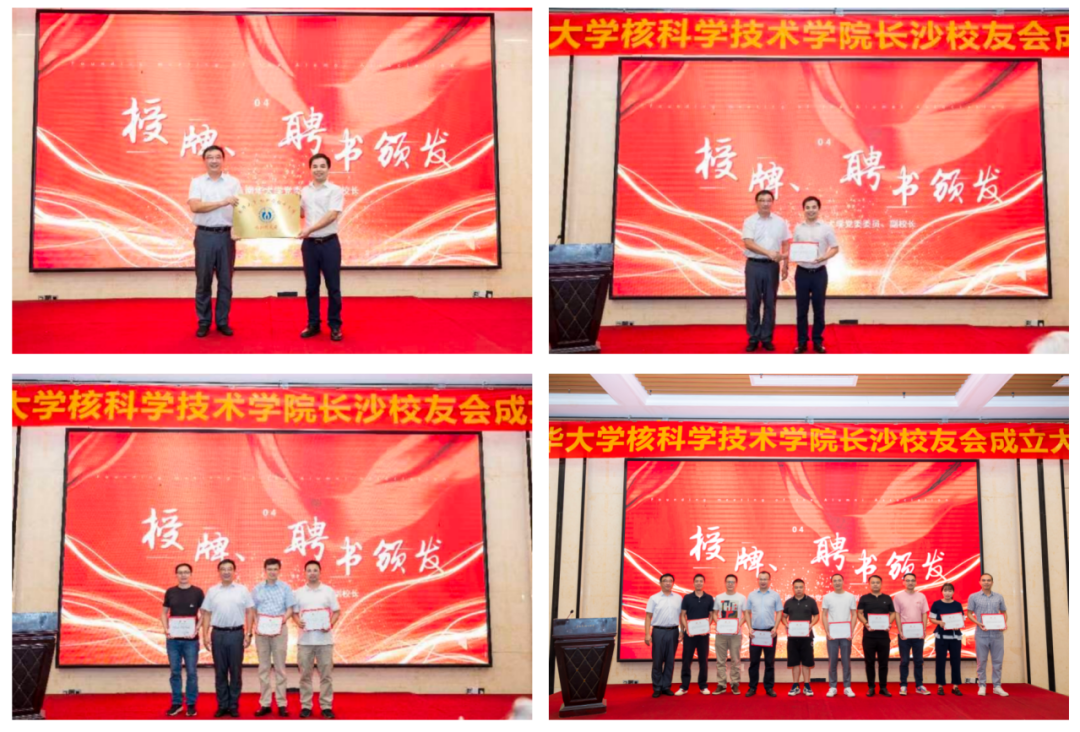 学校党委委员、副校长于涛为伟德国际victor1946核技术学院长沙校友分会授牌,并为校友分会的顾问、会长、副会长颁发了聘书。
