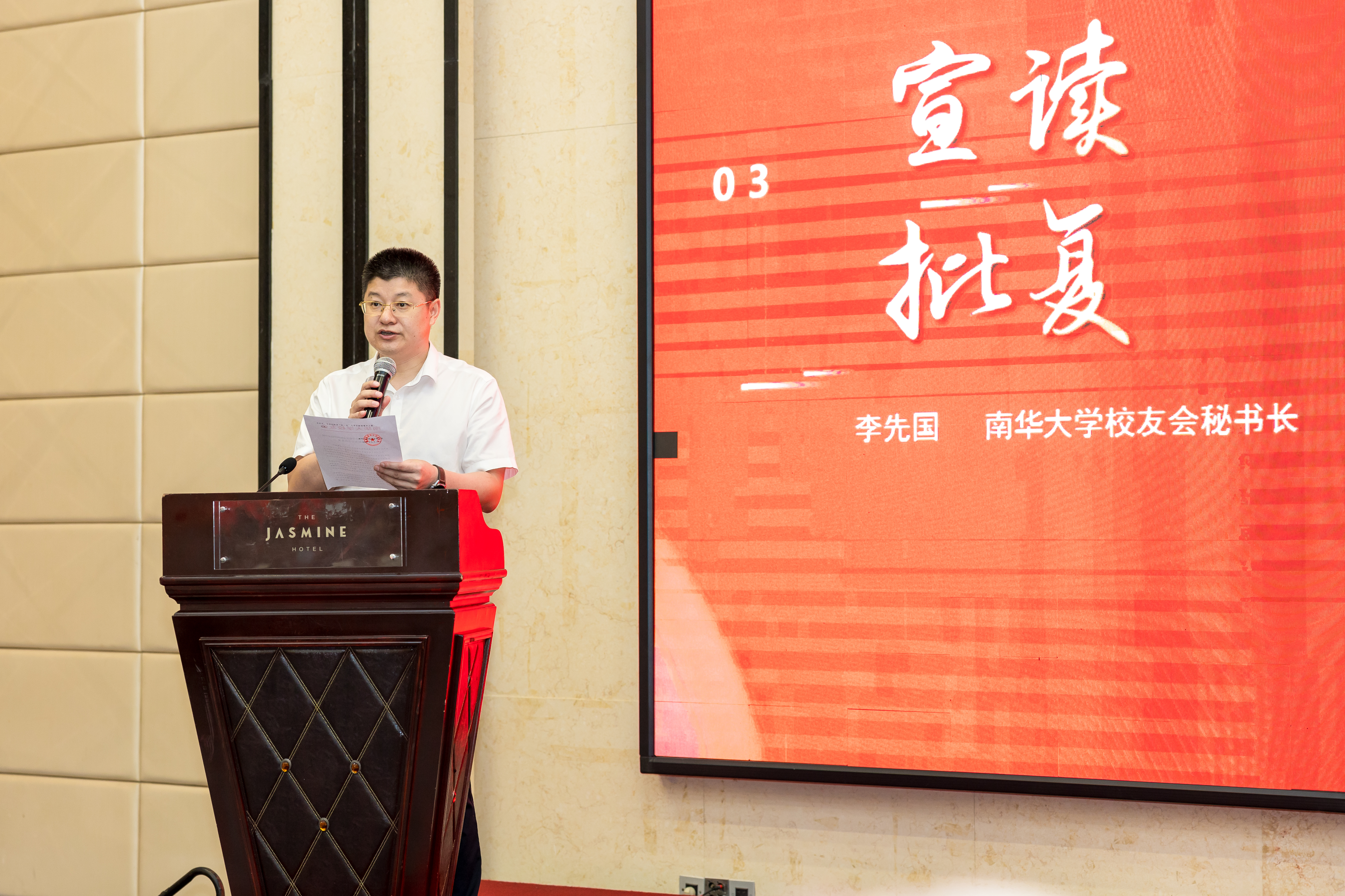 李先国宣读了《关于成立伟德国际1949长沙校友分会的批复》。