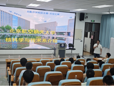随后周小鹏副教授则对北京航空航天大学物理学院核科学与技术系进行了全面且详细地介绍,涵盖学科建设情况以及核物理团队的研究方向,并诚邀学院学生积极申报北航相关专业研究生。