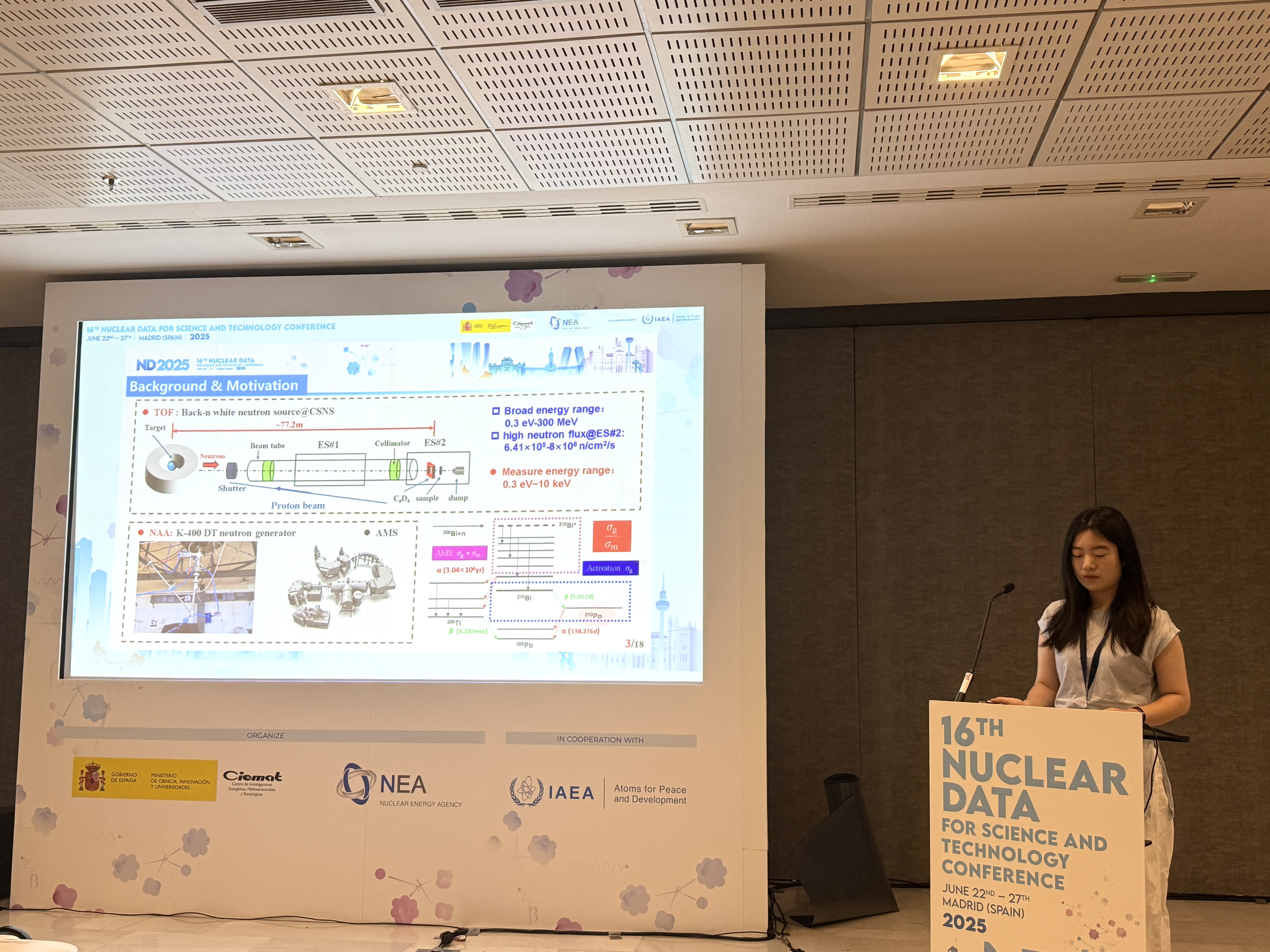 近日,伟德国际1949硕士研究生刘静、栾鹏两位同学受邀参加在西班牙首都马德里举办的国际学术会议——“16th Nuclear Data for Science and Technology Conference (ND2025)”,并以口头报告的形式向国际同行展示了各自的研究成果。国际核数据大会每三年举办一次,是核数据界规模最大、水平最高的学术交流会议。