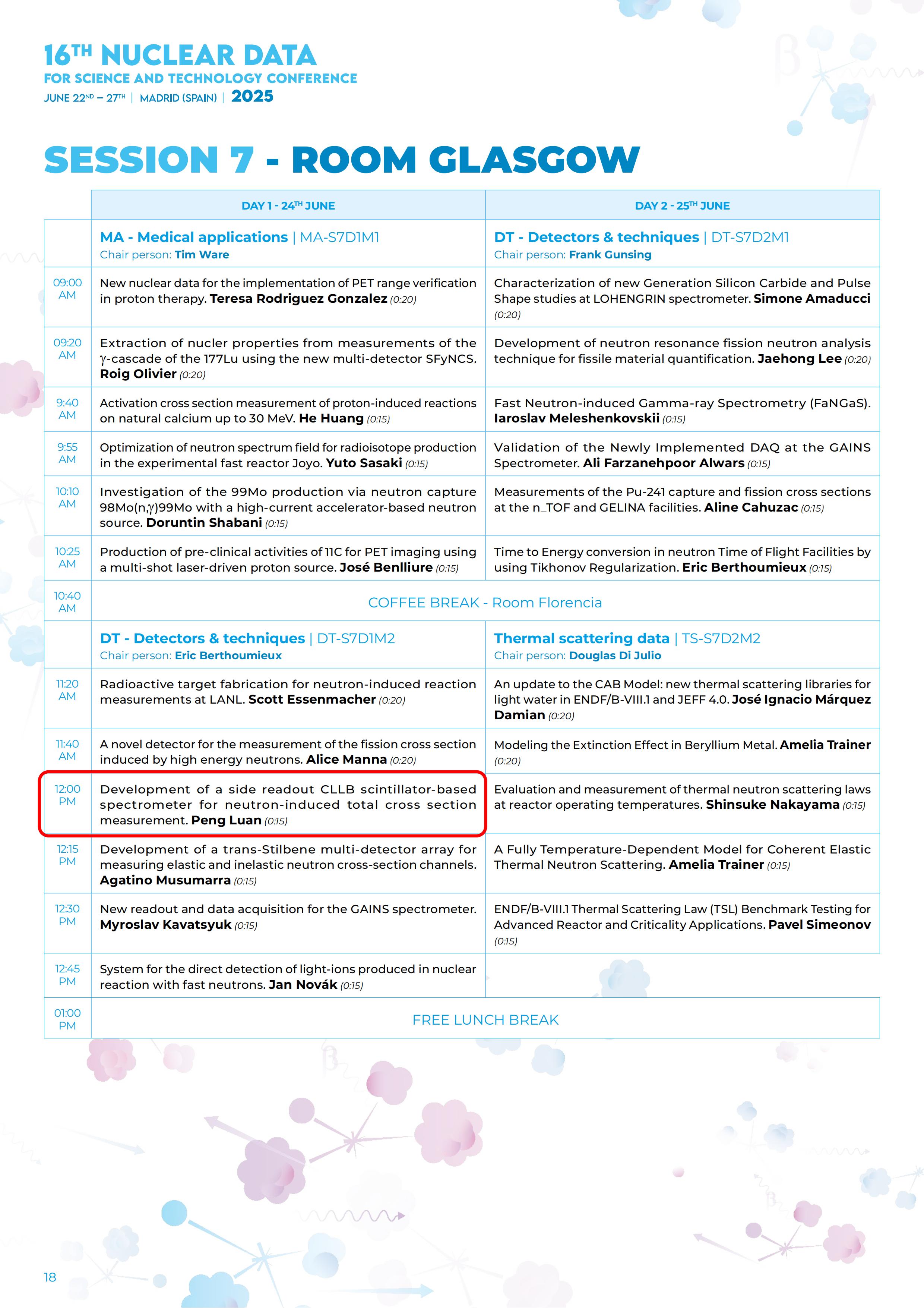 刘静和栾鹏两位同学皆为我院冯松副教授指导的硕士研究生,此次参会也得到了湖南省科技创新计划项目(2024RC3205)和国家自然科学基金(12375296)的支持。通过此次参会,两位同学不仅收获了丰富的学术反馈,提升了科研表达与国际交流的能力,也进一步明确了未来研究方向。这一经历充分展示了我院冯松老师指导下的辐射物理及应用课题组学子风采,肯定了课题组在中子核数据领域的科研水平,体现了学院重视并支持学生参与国际学术交流、提升科研创新能力的良好氛围。未来,学院将继续鼓励更多青年学者走向国际舞台,为建设高水平科研学府贡献力量。