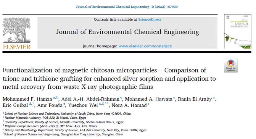中心外籍教师Hamza教授近期在Journal of Environmental Chemical Engineering(中科院二区,IF:7.968)上发表重要学术论文。伟德国际victor1946为该项研究的第一完成单位,Hamza教授为该成果的第一作者,中心主任韦悦周教授和法国阿莱斯高等国立矿业学校Eric Guibal教授为共同通讯作者。