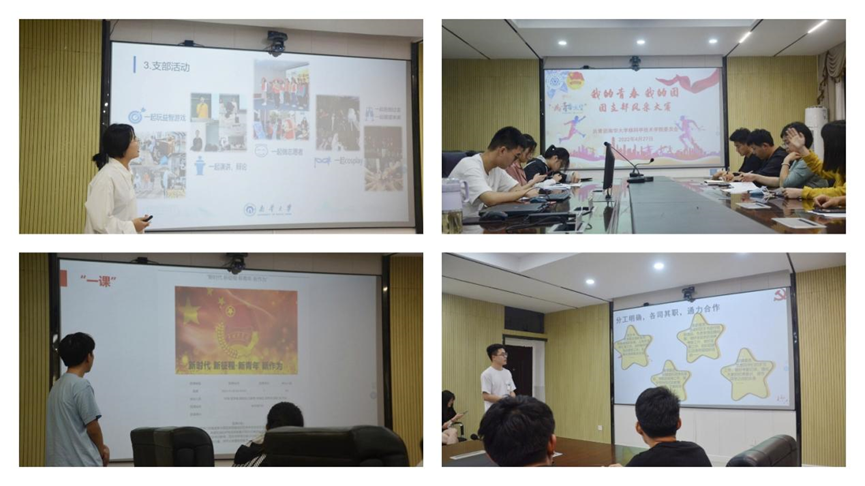 接着,各团支部分别从支部班子建设、组织运行情况、“三会两制一课”制度落实情况、支部开展活动情况、团员参与情况、主要成绩各方面进行了展示,展现团支部独特的活力与风采,充分发扬团支部的号召力和凝聚力。