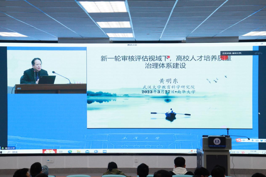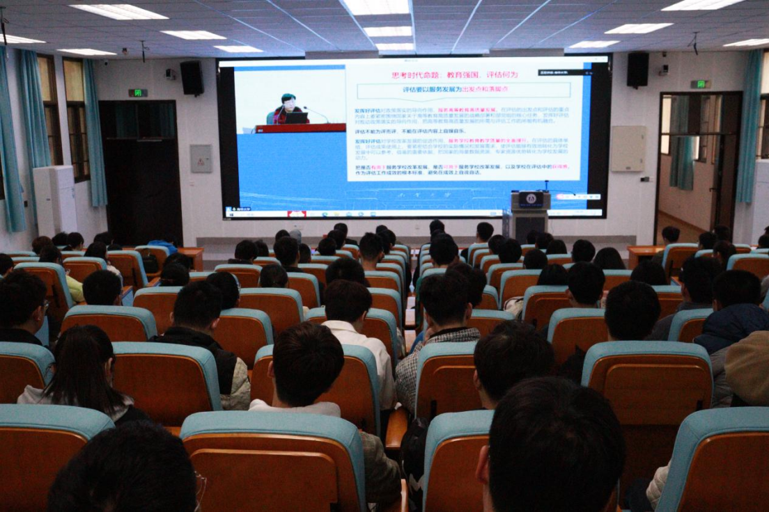 报告会邀请了教育部教育质量评估中心高等教育院校评估处处长盛敏,武汉大学教育科学研究院教授、教育部普通高等学校本科教学工作审核评估专家黄明东。