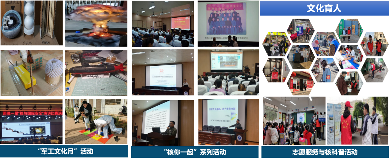 2018年学院获批教育部首批“三全育人”综合改革试点院(系),积极整合学校、家庭、社会、校友等各方资源,做好全员育人工作,形成了领导带动、教师联动、考核促动的全员育人局面。聚焦学生成长的关键阶段,将思想政治教育贯穿学生在校全过程,遵循学生成长规律,制定学习适应、专业学习、能力拓展、职业规划等不同目标,融汇第一课堂、第二课堂、第三课堂,融入“两弹一星”精神、“四个一切”核工业精神和新时代核工业精神的全过程育人体系。