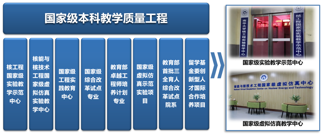 学院坚持本科教育教学的核心地位,积极推动本科专业建设、教学平台建设、实验条件建设等本科教育教学质量工程高质量发展。学院现拥有核工程国家级实验教学示范中心、核能与核技术国家级虚拟仿真实验教学中心、国家级工程实践教育中心、教育部首批三全育人综合改革试点院(系)、国家留学基金委创新型人才国际合作培养项目等八大国家级本科教育质量工程平台,这为学院本科教育教学和人才培养奠定了坚实基础。