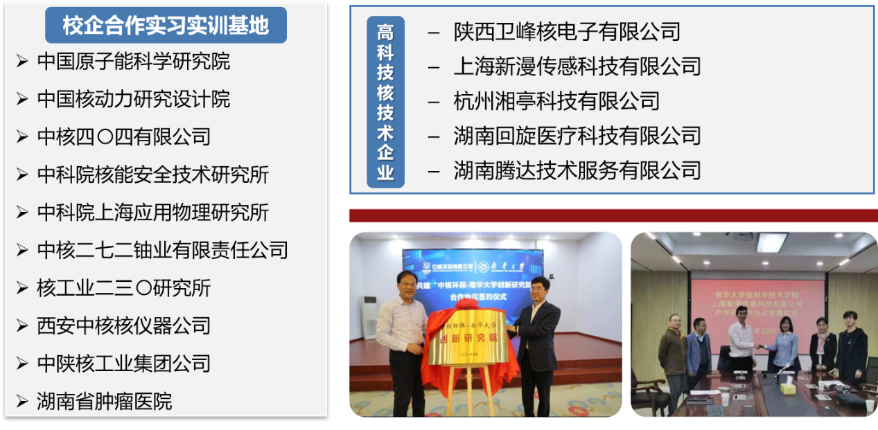 学院现拥有支持各专业开展生产实习、毕业实习、毕业设计等实习实践教学基地20个,其中包括中国原子能科学研究院、中科院核能安全技术研究所等科研院所5个,包含中核四零四有限公司、西安中核核仪器公司等涉核的大型国企4个,包含湖南省肿瘤医院等事业单位5个,包含陕西卫峰核电子有限公司等高科技民营企业6个。