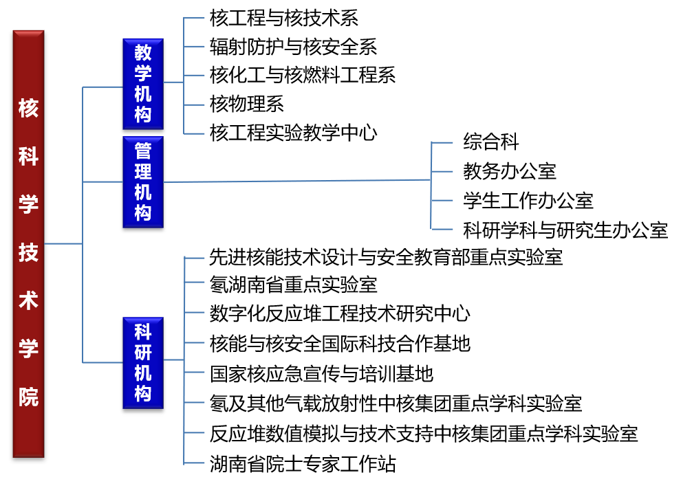 学院依托“核科学与技术”(湖南省世界一流培育学科)一级学科硕士点、博士点和博士后科研流动站,以及先进核能技术设计与安全教育部重点实验室、科技部核能与核安全示范型国际科技合作基地、国家核应急宣传和培训基地等国家级科研平台,反应堆数字模拟与技术支持、氡及其他气载放射性等中核集团重点学科实验室,氡湖南省重点实验室、湖南省数字化反应堆工程技术研究中等省级科研平台,围绕“四个面向”,以服务核工业、国防、军工、环保和医疗卫生事业的重大战略目标和人才培养需求,培养能够胜任核技术及应用、辐射防护、医学物理、核能工程、核化工及核物理等领域的科学研究、工程设计、运行管理、技术开发等工作的高级专门人才。