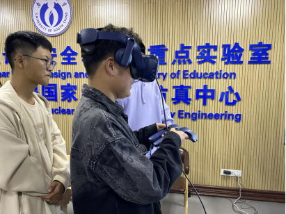 随后,为了进一步促进本科生对于核学科深入了解,于涛副校长带领本科生在学院学科实验室开展了沉浸式体验交流活动,为本科生讲授先进核能设计技术与安全教育部重点实验室、核能与核技术虚拟仿真中心、国家核应急宣传和培训基地等学科科研平台的基本情况,从科研平台的科学研究、社会服务、人才培养等方面进行详细讲授,重点介绍了各个平台如何开展本科生培养。同时,于涛副校长鼓励同学们要刻苦研学,弘扬“两弹一星”精神、“四个一切”核工业精神和“强核报国,创新奉献”新时代核工业精神,在学业之余积极参加各类科研创新活动,提升个人批判性创造性思维,强化个人科研素养和创新能力。